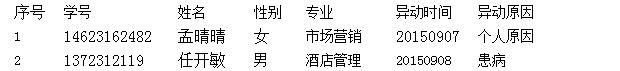 2015年8月31日至2015年10月10日期间,以下同学因各种原因申请自动退学。现予以告知。