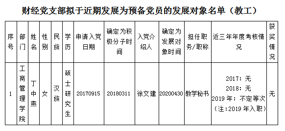 hjcvip黄金城党总支财经党支部拟于近期发展为预备党员的发展对象公示