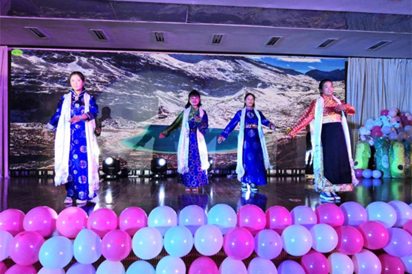 新生辅导员表演节目,是学院历届迎新生晚会的保留环节。今年,2019级年级辅导员王天驰老师深情独唱了《一次就好》,引发了同学们的集体合唱,将整场晚会烘托到了高潮。曹远森老师与藏族学生同台表演歌舞《卓玛》,表达中华民族一家亲的情结,赢得了同学们热情的掌声。